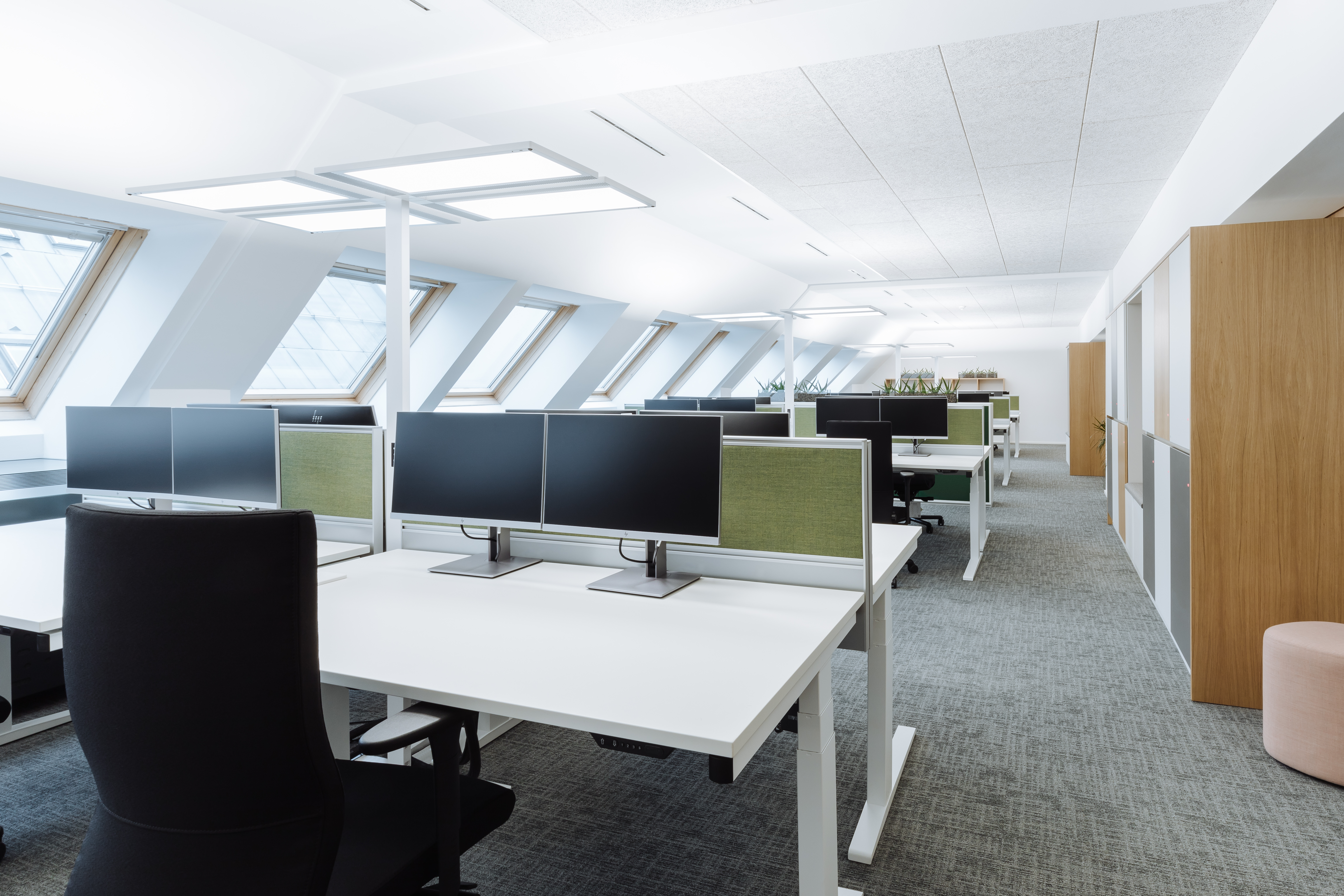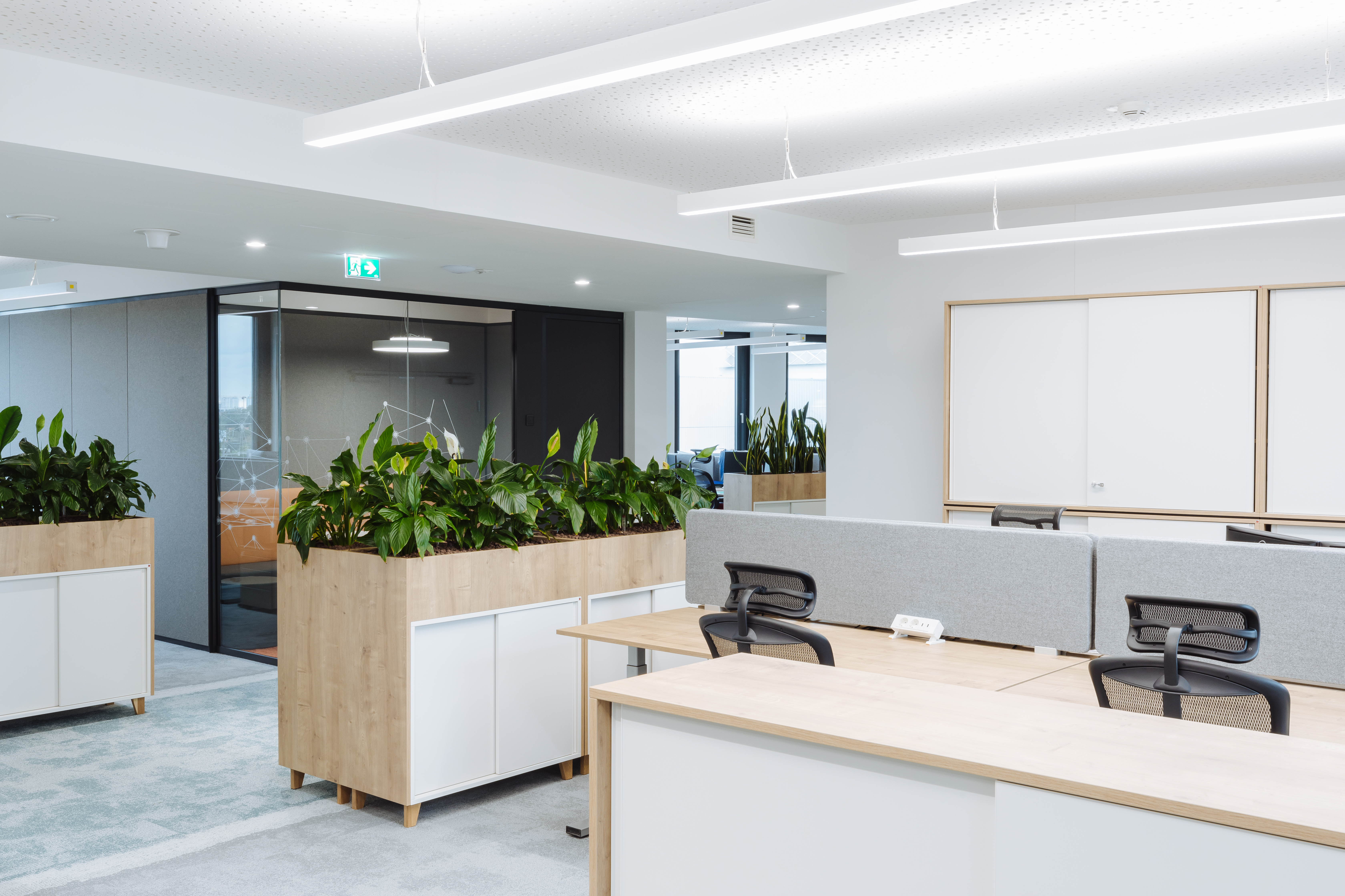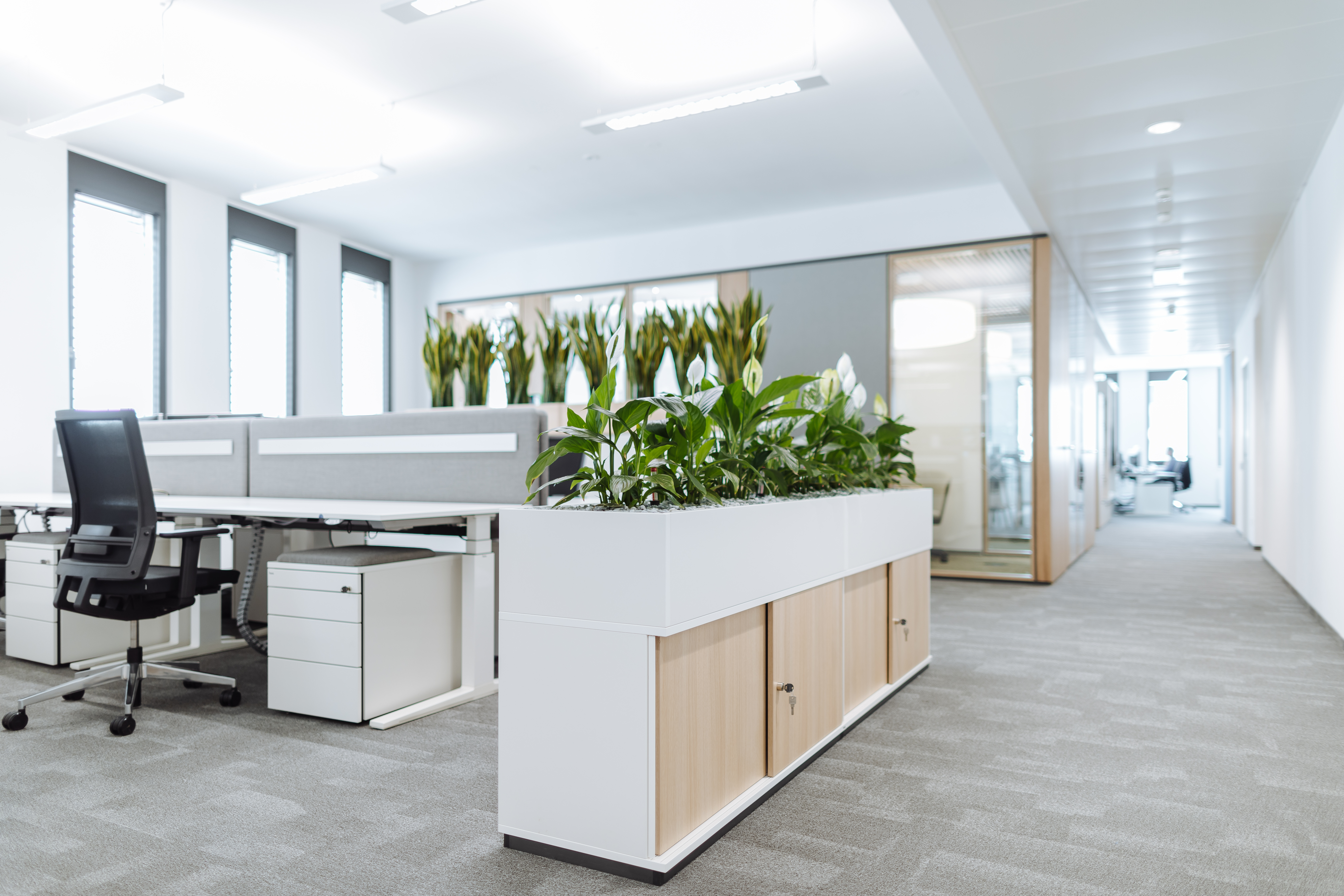 Wir begleiten Sie bei der Umsetzung Ihres Raumkonzeptes und setzen Möbel, technische Ausstattung, Licht und Farben so ein, dass sie die Interaktion fördern und die Kreativität und Gedanken stimulieren. Mit uns an Ihrer Seite wird das Büro identitätsstiftend, es trägt so wesentlich zu Ihrer Attraktivität als Arbeitgeber bei.